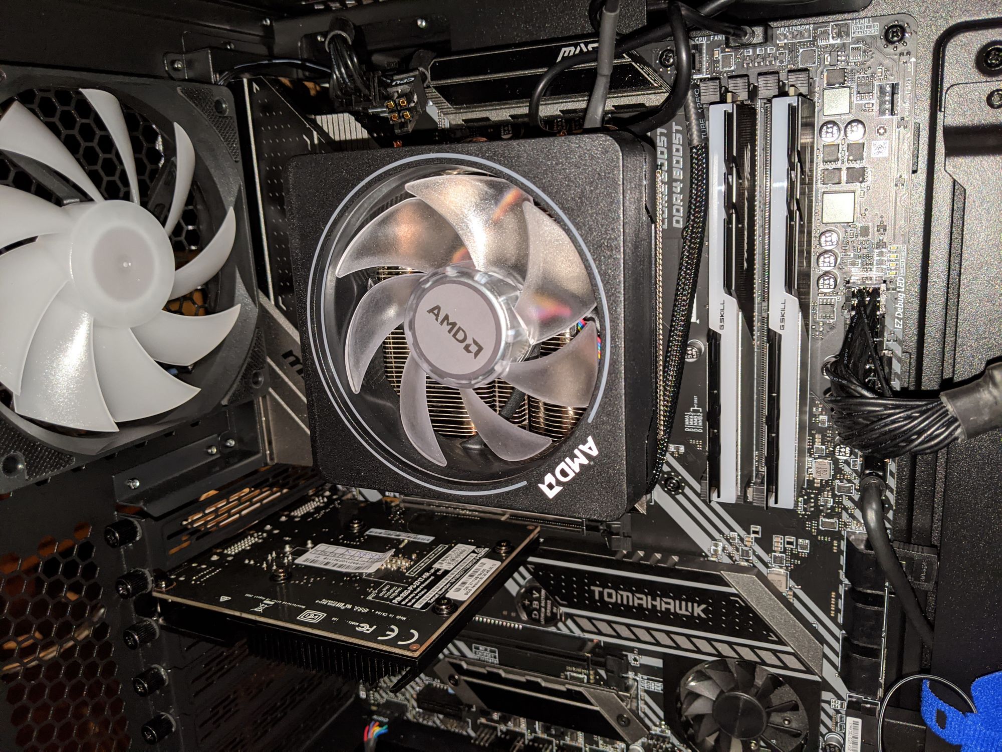 The decision not to go with liquid cooling yet came from the analysis linked above by Hardware Unboxed, which showed that, while a liquid cooler would certainly keep the system significantly cooler, the bundled Wraith cooler kept the CPU cool enough for most purposes. If I planned to overclock a lot (or if I do so in the future), I would have made a different choice. The nice thing about having built it myself is that I can also change it myself if I change my mind later.