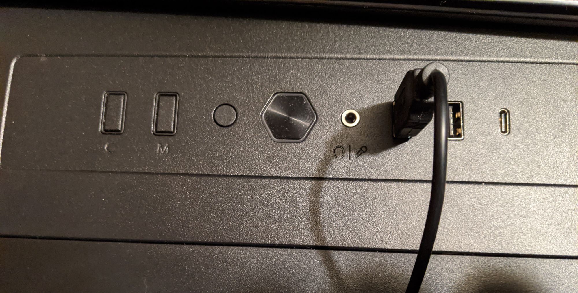 The other oddity is that, while the front panel has a spot for a USB-C connector, it's not populated. You can buy a $12 cable, though (and I did) to populate it if your motherboard supports it (which it does in this case). Installing the cable requires popping out the PCB board with the front panel buttons and ports on it, but that's not actually very difficult when you're already building the whole system anyway. Four screws and the board pops out. Pop the cable into place, one screw to secure the cable to the PCB, and pop the board back in and re-secure it.