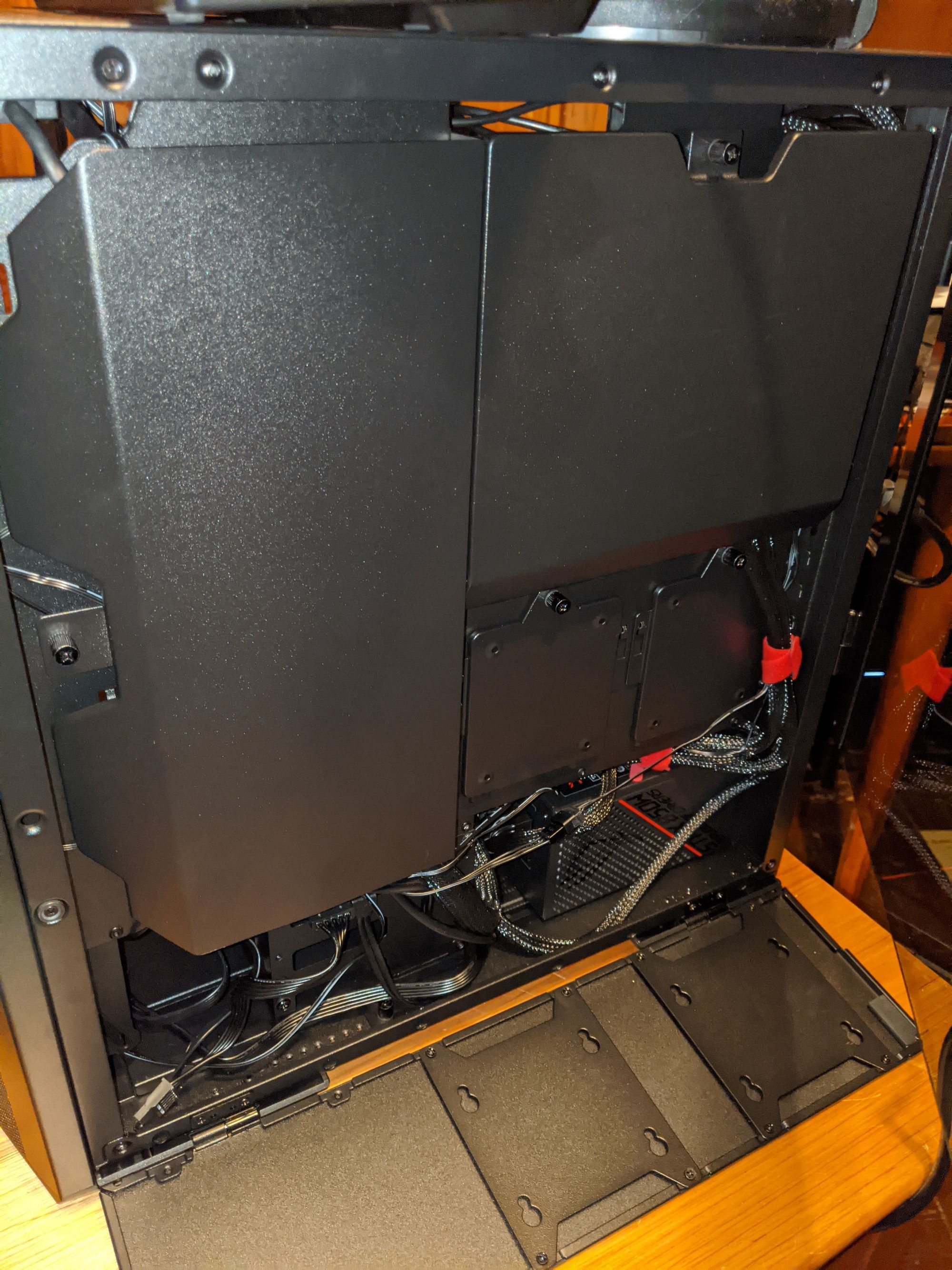 - Organization is good. Tools are good. I threw some money at iFixit for a tool kit and an organizer tray. It was a smart choice. I also bought me some colourful velcro cable ties--although the case and power supply both came with ample zip-ties and velcros as well, which was a nice touch. I just figured that a box that already had colourful RGB lighting should have colourful cable ties.